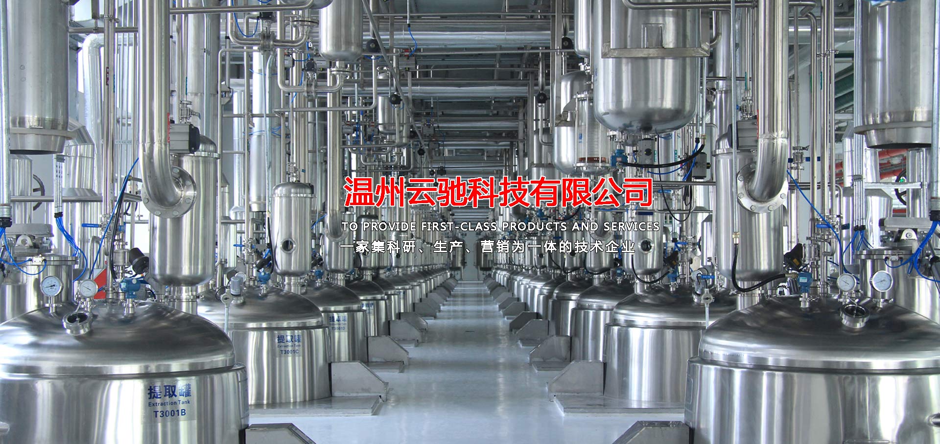 溫州云馳科技有限公司是一家集科研、生產(chǎn)、營銷為一體的技術(shù)企業(yè),本公司生產(chǎn)的中藥提取、濃縮、蒸發(fā)及有機(jī)溶媒回收設(shè)備,衛(wèi)生級不銹鋼容器設(shè)備,衛(wèi)生級管道配件等系列產(chǎn)品,范圍涵蓋制藥工程、乳品工程、生物工程、化工工程等領(lǐng)域,目前,本公司產(chǎn)品包含八大系列和28類品種,分別為中藥提取設(shè)備、濃縮設(shè)備、純化分離設(shè)備,酒精回收設(shè)備,配液系統(tǒng)設(shè)備,食品乳品機(jī)械設(shè)備,不銹鋼容器設(shè)備以及輔助配套設(shè)備等,力爭為廣大客戶提供滿意的交鑰匙工程服務(wù),目前,本公司已與多家科研院所及相關(guān)設(shè)計(jì)單位、行業(yè)協(xié)會(huì)、技術(shù)專員合作,建立了完善的科研開發(fā)體系,技術(shù)力量雄厚,擁有先進(jìn)的質(zhì)量保證體系,我們將打造一支素質(zhì)高,技術(shù)精,服務(wù)熱情的職業(yè)化隊(duì)伍,為廣大客戶解決設(shè)備工藝上的需求和難題并為廣大客戶提供優(yōu)質(zhì)的服務(wù)。